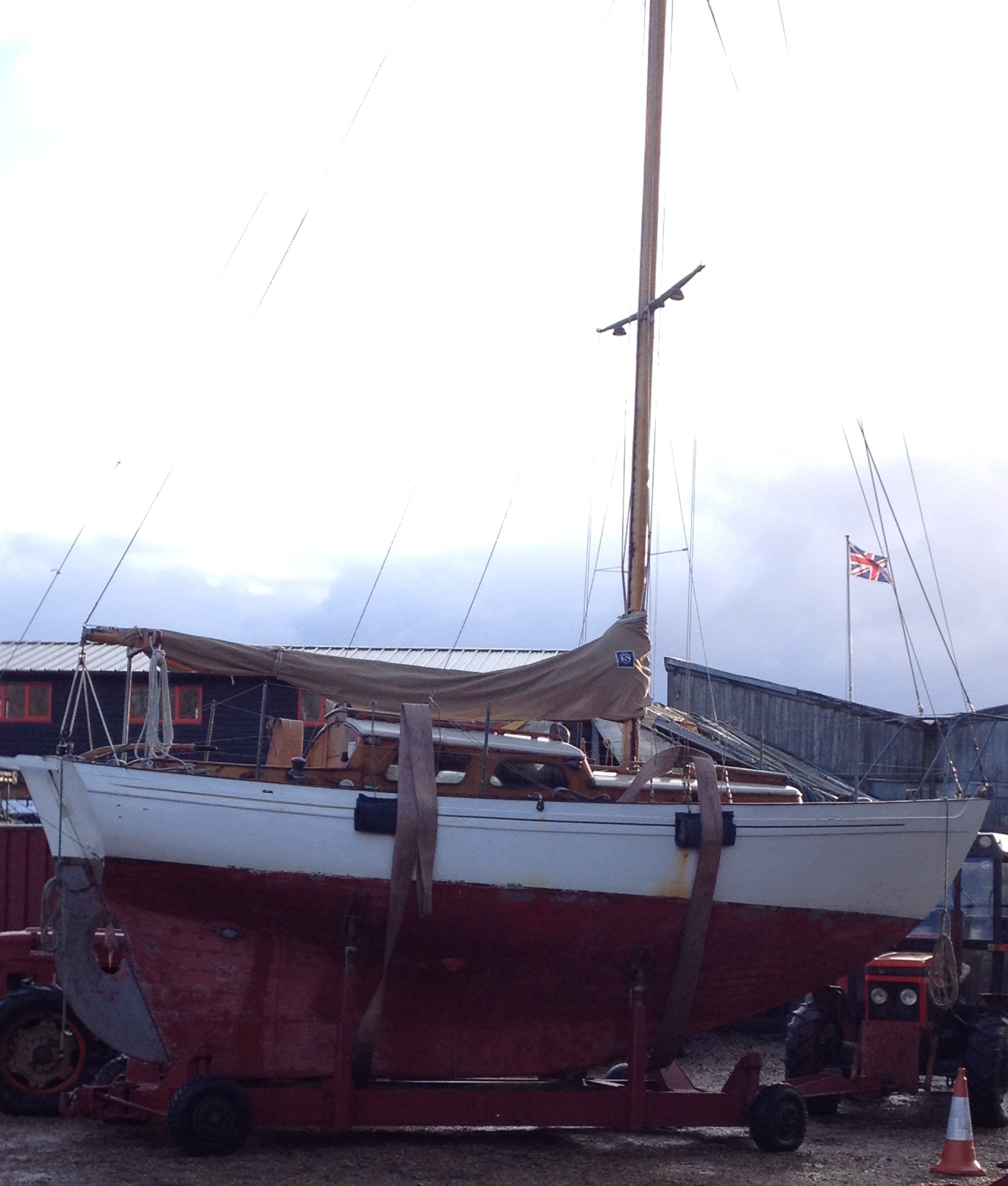 The plan was to lift Drumler out in November, then work steadily over the winter to strip the hull and re-paint. The lifting out part went smoothly. Here she is being taken to her cradle.